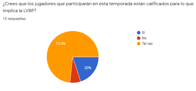 Con respecto al nivel de los jugadores que participarán en esta liga, el 74% de los encuestados, considera que tal vez los peloteros estén calificados para lo que implica este evento deportivo. El presidente de la LVBP, Giuseppe Palmisano, destacó que “los peloteros que están jugando en este momento, son de ligas independientes, jóvenes, que no están adscritos a la MLB y beisbolistas veteranos que sueñan con volver a las grandes ligas”.